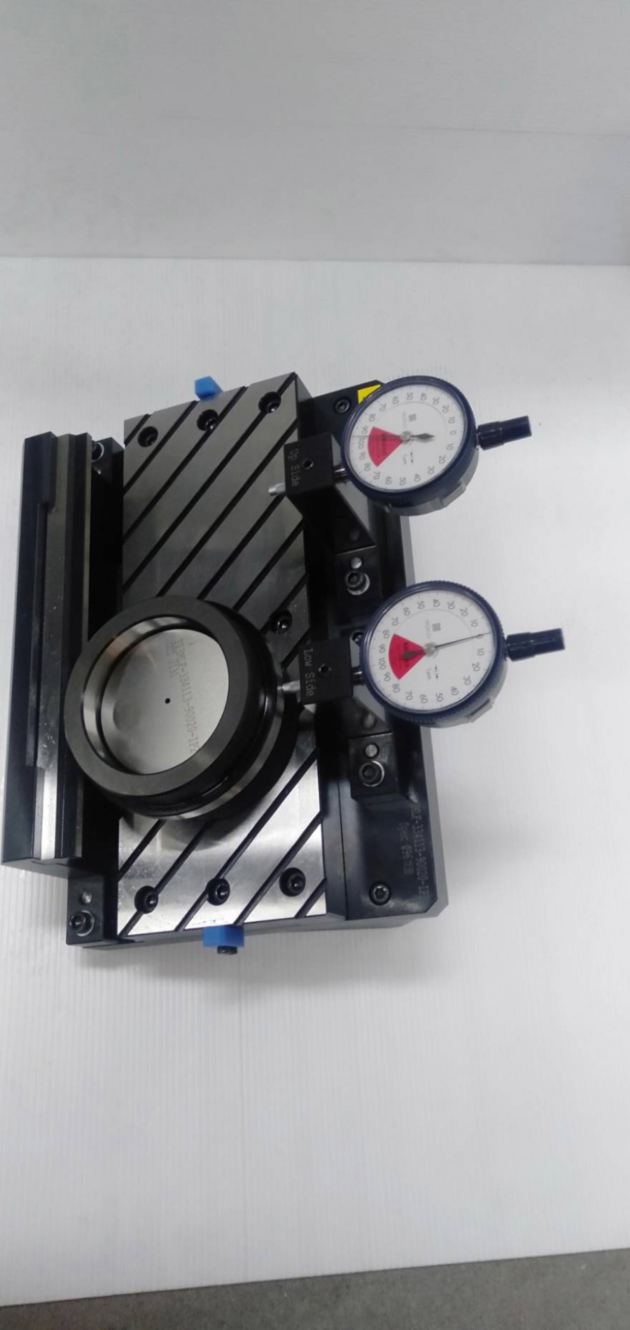 Inspection Jig check OD ของชิ้นงาน เพื่อควบคุมค่า Diameter ของชิ้นงานหลังการผลิตให้อยู่ในค่ามาตรฐาน ที่กำหนดใว้ใน DWG.โดยนำ Master Gauge สวมเข้ากับ Datum วางบน Base plate เเล้ว SLDE ชุด Datum/Mastergauge เข้าหา point ของ Dial Indicator เพื่อหาจุดสูงสุด เเล้วปรับ หน้าปัดของ Dial Indicator ไปที่ตำเเหน่ง '' 0 " โดย Dial Indicator ตัวที่1เช็ค OD ด้านล่างของชิ้นงาน Dial Indicator ตัวที่ 2 เช็ค OD ด้านบนของชิ้นงาน Inspection Jig check OD ของชิ้นงาน ชุดนี้ออกเเบบมาเพื่อ สะดวกรวดเร็วในการตรวจวัดในระหว่างการผลิต เเละสามารถคัดเเยกชิ้นงาน NG หลังจากการผลิตโดยการอ่านค่าจากตัว เพื่อหาจุดสูงสุด เเล้วปรับ หน้าปัดของ Dial Indicator